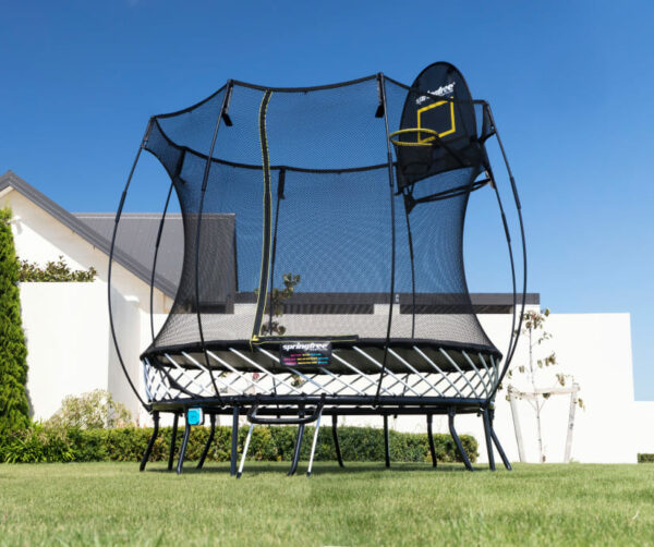 Беспружинные батуты — это конструкции, где традиционные металлические пружины заменены гибкими стержнями из композитных материалов. Батуты Springfree (БезПружин) пошли еще дальше и полностью убрали все жесткие элементы из зоны прыжков.
